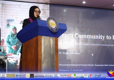 Meanwhile, Dr. Beverly Fernandez, GAD Coordinator of Lingayen Campus, delivered a heartfelt testimonial recounting her journey as a guidance counselor since 2017. She shared how PSU once had limited guidance counselors and, through sustained efforts and initiatives, has now grown to have six—reflecting the university’s strengthened support system for student welfare.
