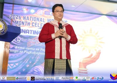 University President Dr. Elbert M. Galas who was represented by Vice President for Academics and Student Services Dr. Weenalei Fajardo delivered a message of support, highlighting the vital role of women in institution-building as pillars of dreams and drivers of the future. In his address, he encouraged everyone to be fearless, purposeful, and transformative—not only for women, but for all genders—in fostering a more inclusive academic community.