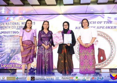 Further enriching the celebration, the keynote speaker, Dr. Poppy Febriana, S.Sos., M.Med.Kom, Dean of the Faculty of Business, Law and Social Sciences at Universitas Muhammadiyah Sidoarjo, Indonesia, shared a compelling case study on women in leadership. In her presentation titled “PKK: More Than a Program,” she emphasized three core strengths of women leaders: influence, trust, and communication—demonstrating how these qualities create impact across both urban and rural communities.