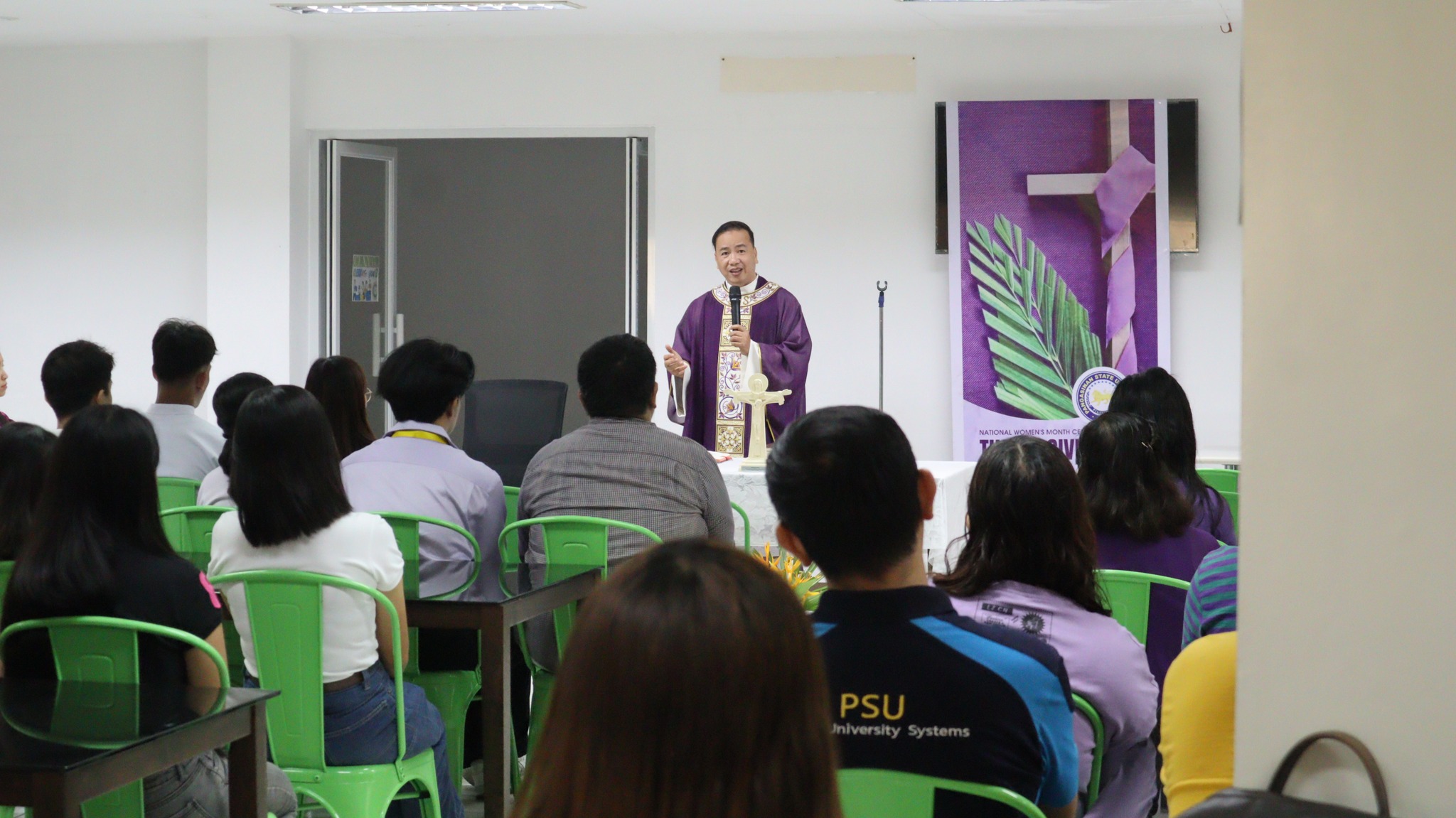 PSUnians gathered at the De Venecia Information Technology of Lingayen campus in the conduct of the said mass, presided by Rev. Fr. Jake J. Rovillos.